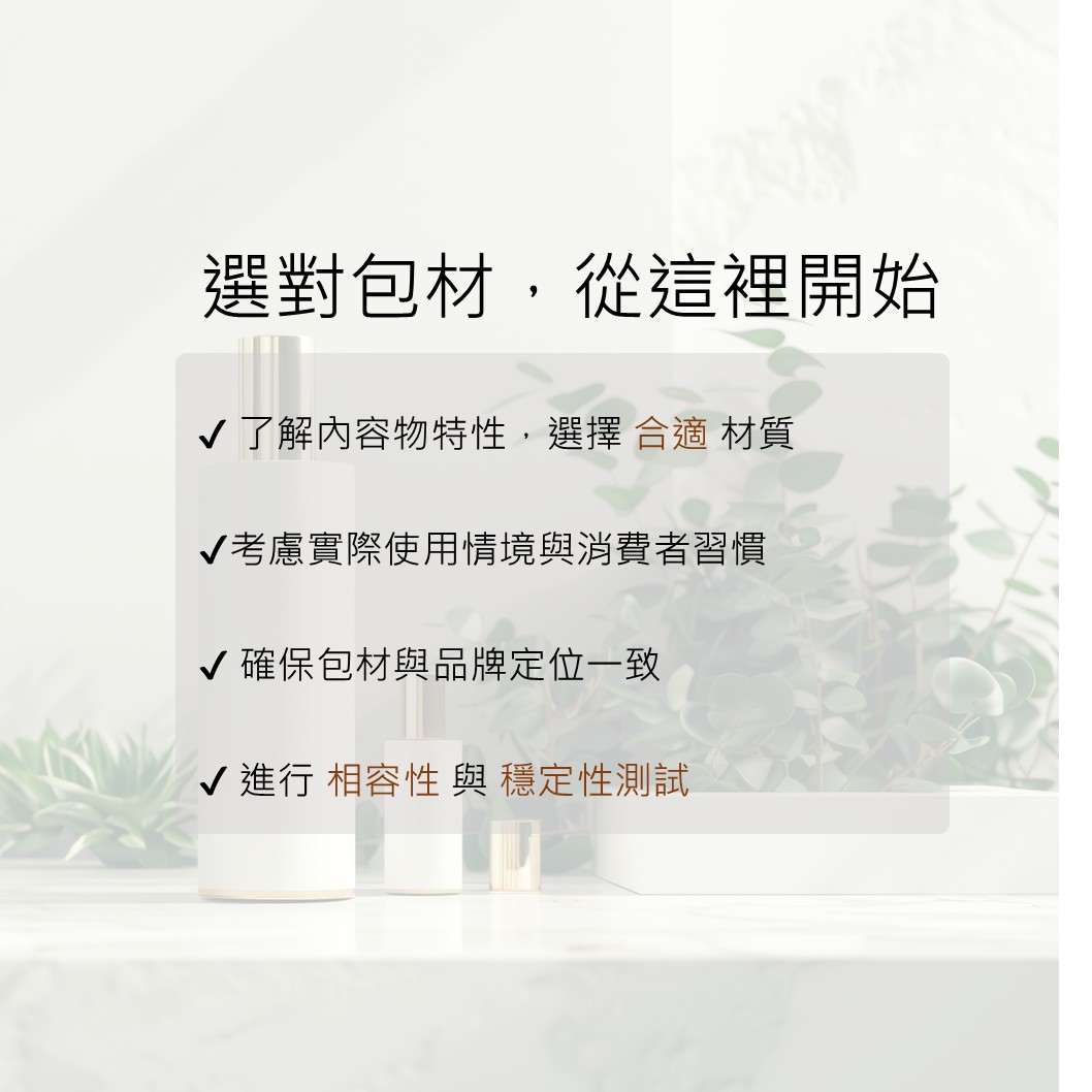 產品穩定性:不同包材材質對空氣、光線、濕氣的阻隔能力不同,長時間接觸空氣後,容易出現氣味變化、顏色變化,甚至影響使用安全。