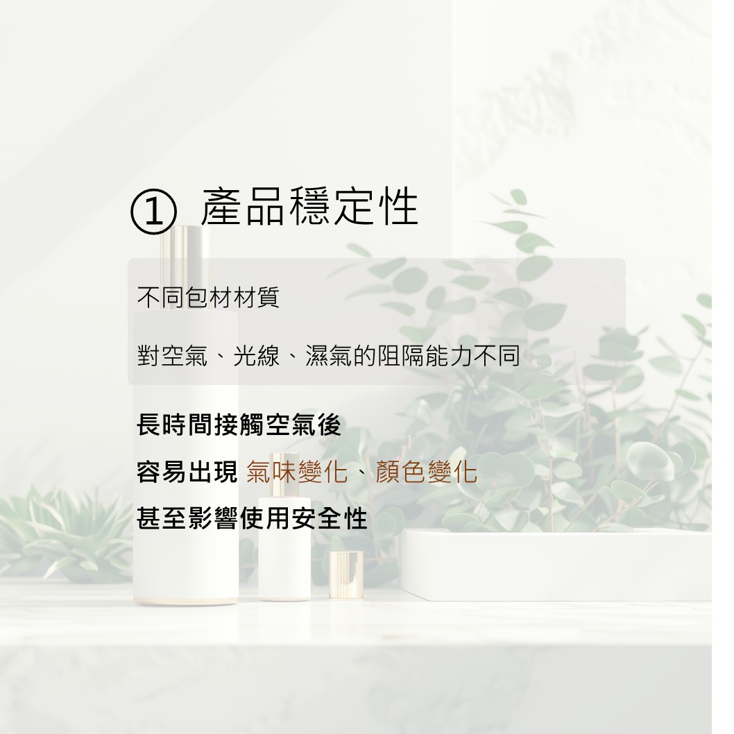 產品穩定性:不同包材材質對空氣、光線、濕氣的阻隔能力不同,長時間接觸空氣後,容易出現氣味變化、顏色變化,甚至影響使用安全。